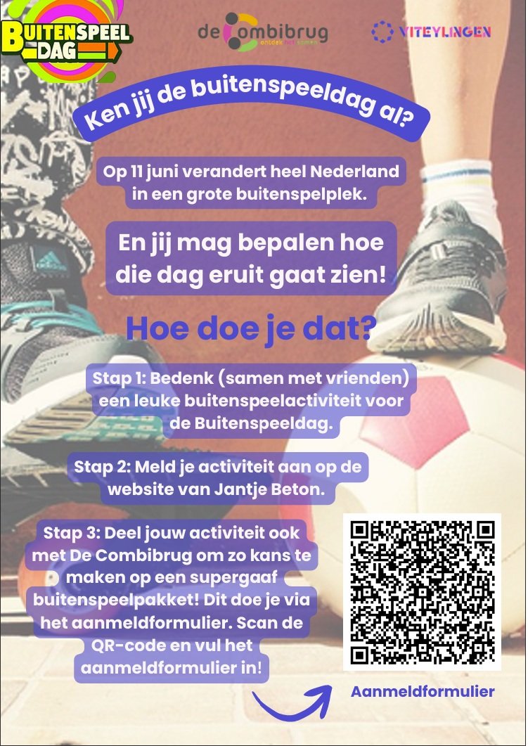 Ben jij tussen de 8 en 14 jaar en vind jij het leuk om een superleuke buitenspeeldag te plannen voor jou en de kinderen uit je buurt? Dan moet je meedoen!